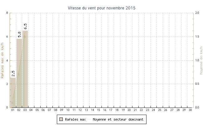 | min | max | moy | Vitesse (rafales) | Secteur | ||